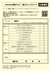 浴室テレビmirarelを設置したご住所等、正しいものを入力してください。