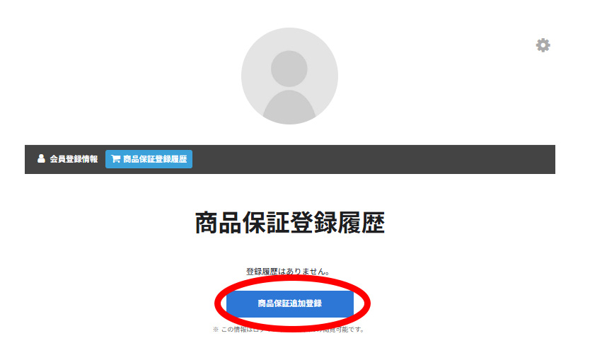 もし複数台登録する場合は、「商品保証登録履歴」ページ下部にある