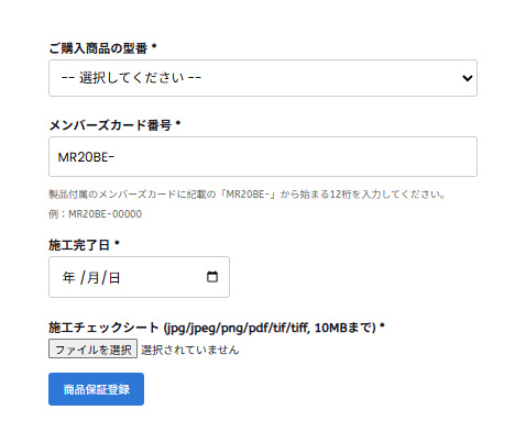 製品付属のメンバーズカードに記載されいる【MR20BE-】以下の数字を入力してください。