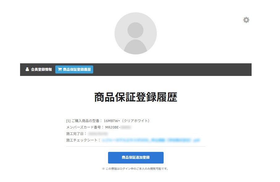 「2.詳細を入力」が終わったら、マイページより「商品保証登録」を行ってください。